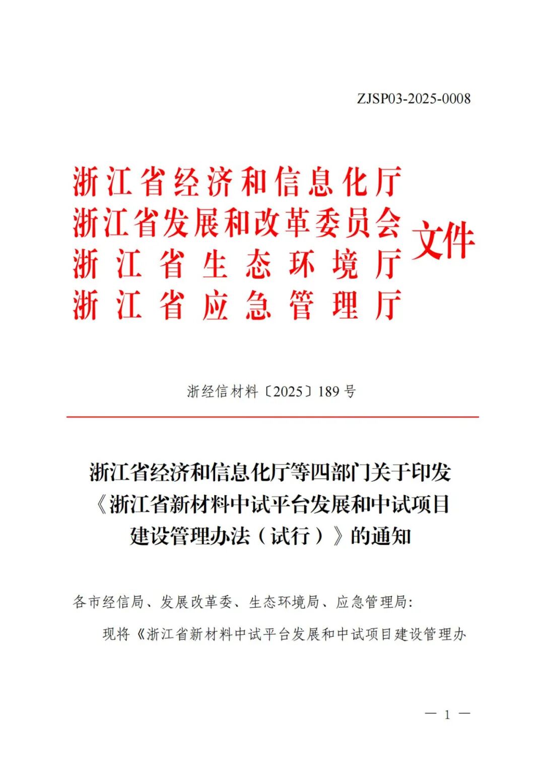 政府動態|浙江省經濟和信息化廳等四部門關于印發《浙江省新材料中試平臺發展和中試項目建設管理辦法(試行)》的通知